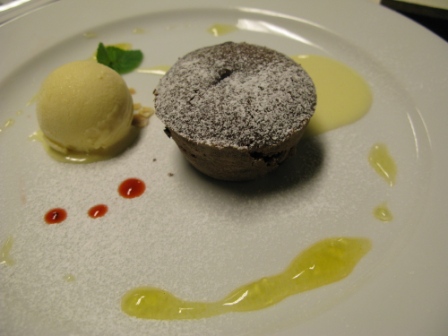 2016/06/19:ブルーベリーのトルタ、エスプーマの中はブラッドオレンジのグラニテとバニラアイス、そしてパンナコッタ