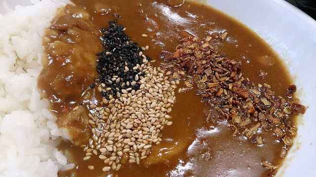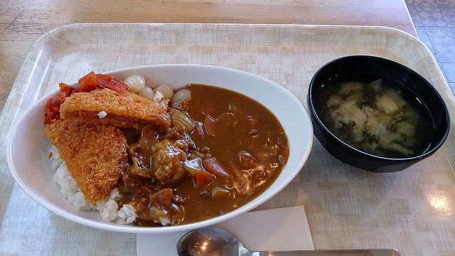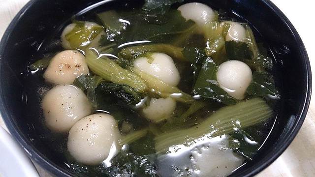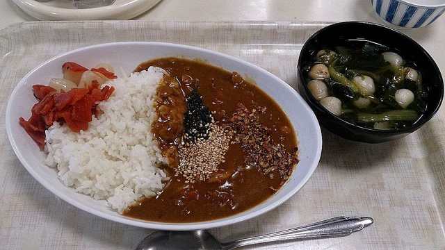 ゴマたっぷりカレーに付く丸麩とほうれん草のお吸い物