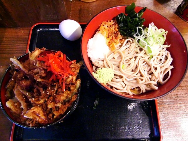 蕎麦 まえだ @京橋 冷やしぶっかけ + ミニ天丼 580円