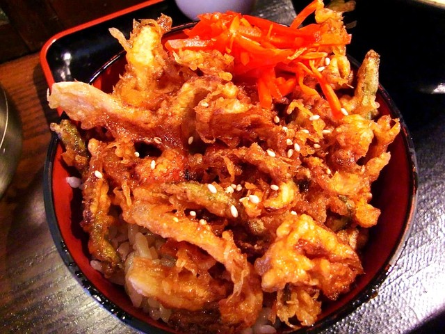 ミニ天丼は烏賊ゲソを使った所謂 「ミニかき揚げ丼」 ですが、濃い目の味付けで、紅生姜をたっぷり載せて頂くのがお勧めです。