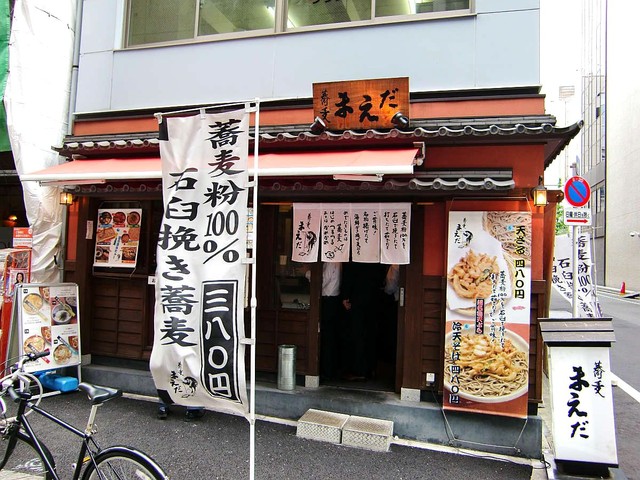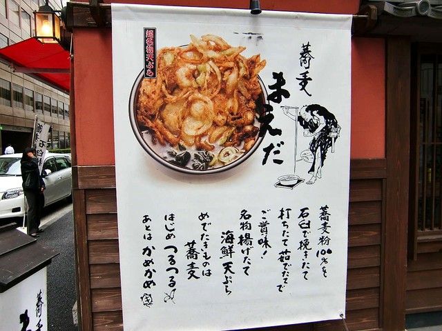 東京駅八重洲中央口から東に延びる八重洲通りと南北に走る昭和通りが交差する宝町の交差点にある東京三菱UFJ銀行の裏に位置する立ち食いお蕎麦屋さん。