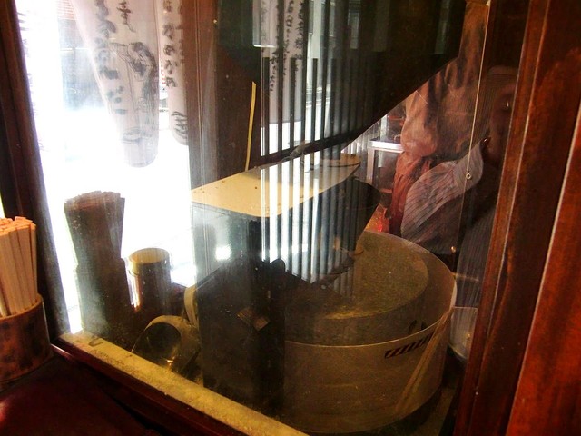 石臼で挽いた蕎麦粉のみを使い、押し出し製麺機で鍋に直接投入して茹で上げを提供する方式により造りだされる蕎麦は、平たい太麺でコシが強く噛み応えがあり、蕎麦の香りも愉しめます。
