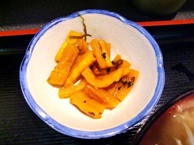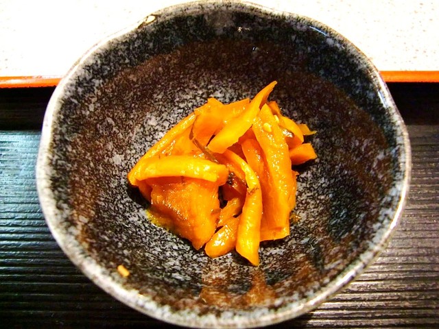 ⑤ お新香 : 宮川=沢庵取り放題、深川=器に盛られている・・・共にできあいのもの