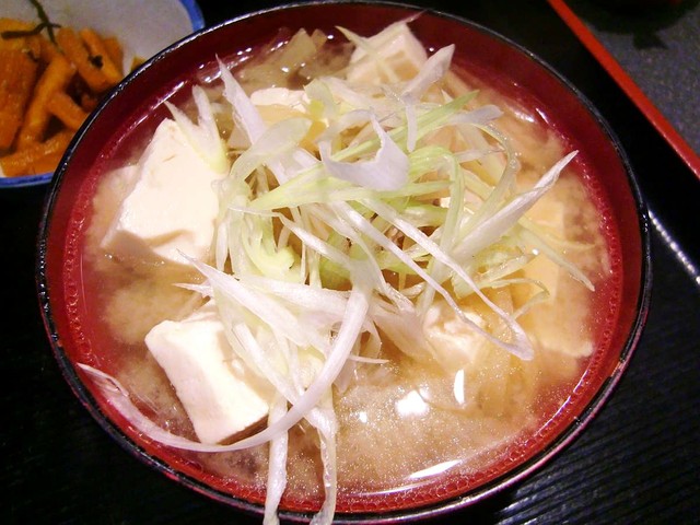 豆腐がたっぷり入った、コクが深い味噌汁もこのお店のご自慢だと思います。