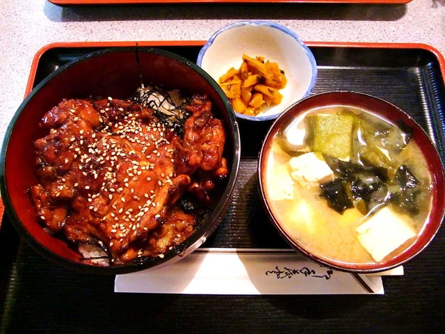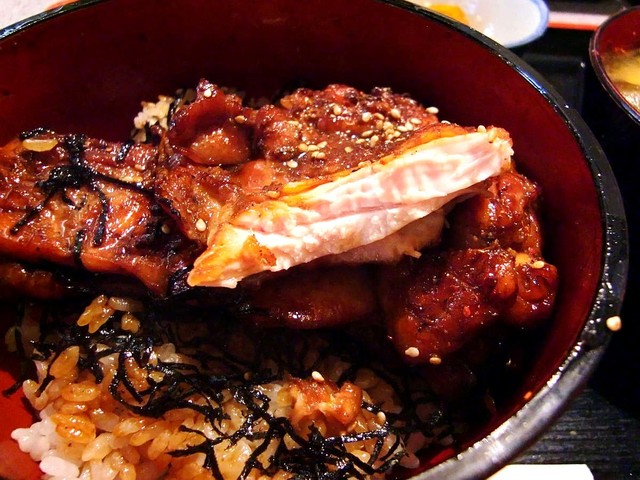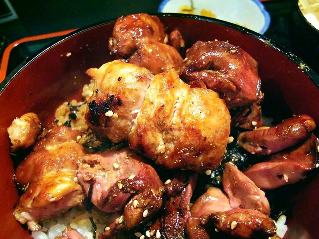 先に頂いた鶏肉の揚げ物定食もボリュームたっぷりで美味しいのですが、もしお時間があるなら・・・もとい是非お時間を作って頂いて、この素晴らしい “焼鳥丼” を食されることを激奨いたしますっ!