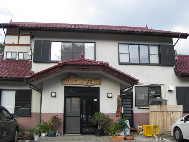 尾瀬を歩いて汗をかいたあとは、近くにあるささの湯で汗を流す。