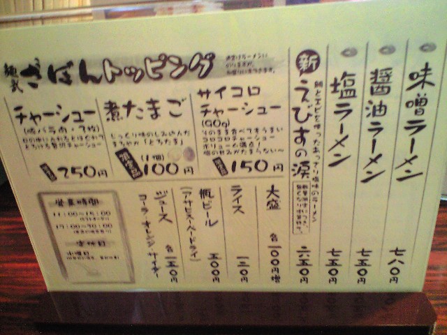 「新 えびすの涙 (650円)」という塩ラーメンを注文しました。