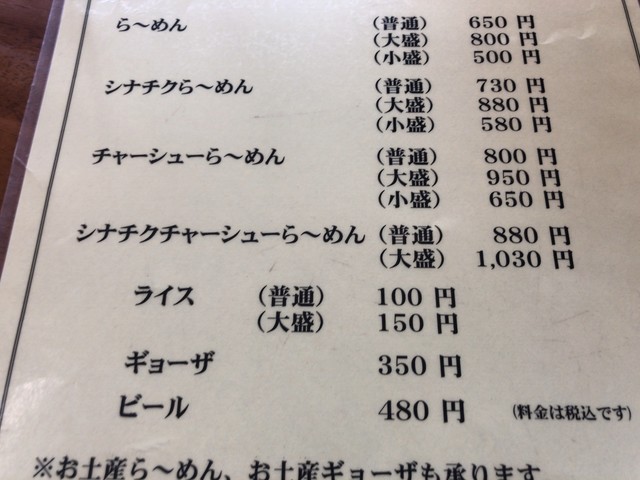 私は「シナチクら〜めん900円」