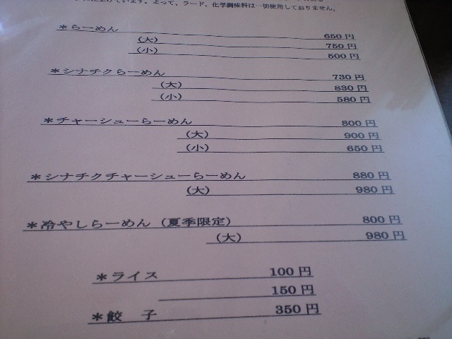 「シナチクチャーシューら〜めん(普通)1,000円」を注文です!