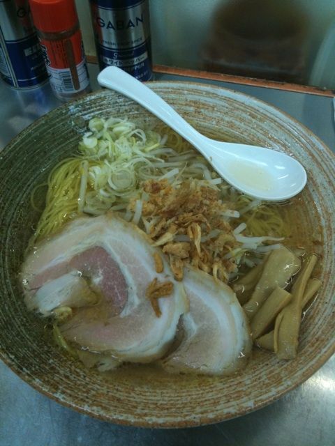 牛骨 豚骨 鶏 魚介類、鯛煮干等出汁の塩ラーメン!コッテリ背脂にしてみた。