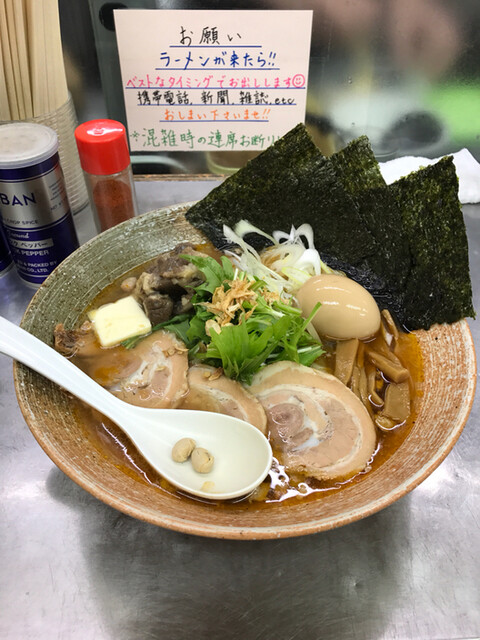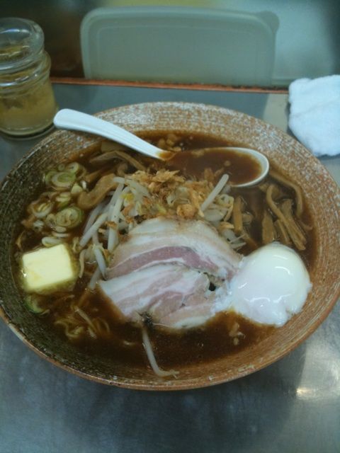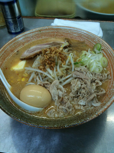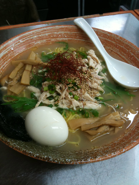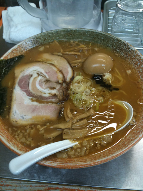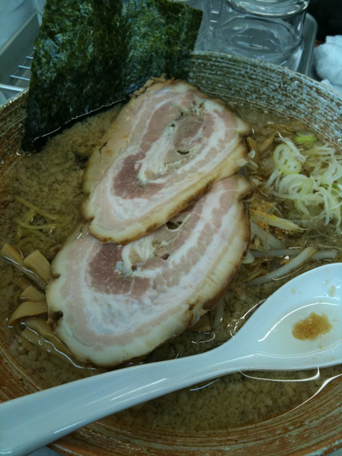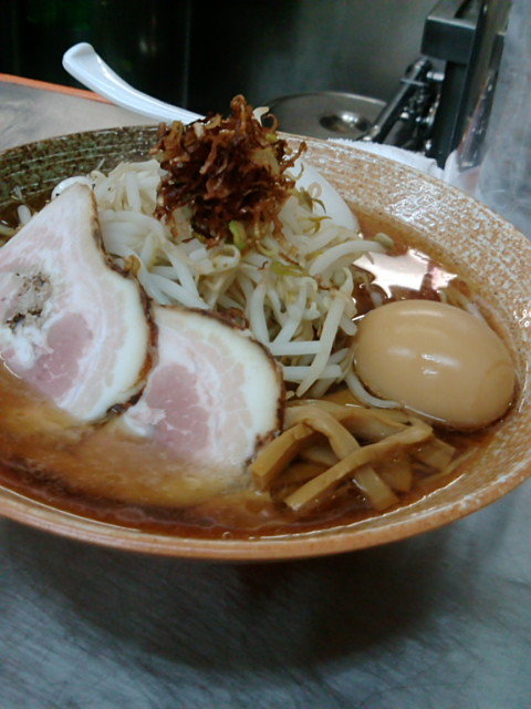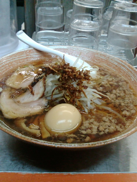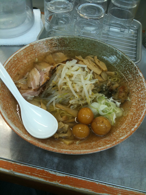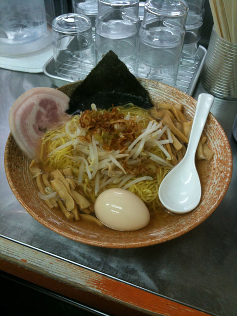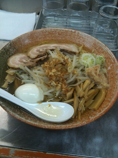 濃い醤油か塩味を選べるとのことだけど、迷わず醤油!今日は悪い肉は100円でトッピングだそうな。もちろんトッピング。