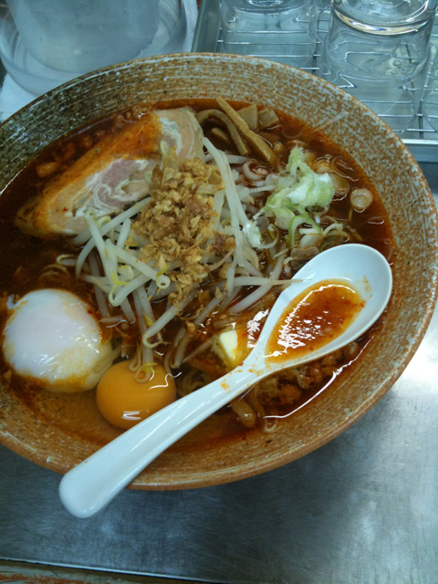 スープ飲みすぎて後半はまぜそばみたいになってしまいました。生卵を絡めてまろやかに、これまた旨し。