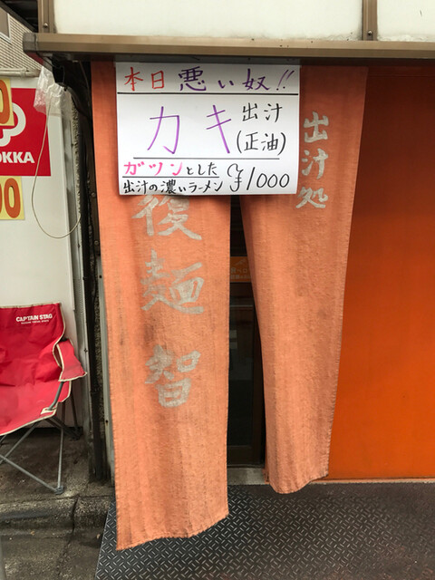 店主のTwitterで、「今日の覆麺ラーメン 鯛煮干 豚骨 肉 鶏 魚介類を焚いきました。醤油か塩!」とのつぶやきを見て覆麺へ