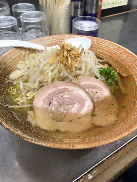 たっぷりのしゃきしゃきもやしに、めんま。ほろほろとほぐれるチャーシュー がんこほどしょっぱくないけど、余韻はがんこやな〜結構好きじゃ。