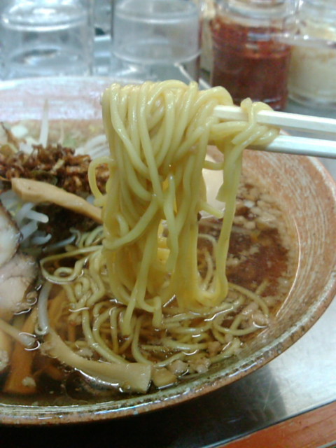 ぱつんぱつんの麺にスープが絡んで美味いよん。悪魔肉ものってるよ。