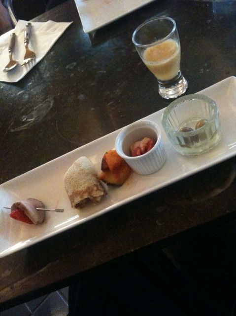メニューも、ちょっとこった感じで「ホタテ貝柱、アサリと海苔のコンキリエ(貝の形をしたパスタ)」とか「ウニのクリームスパゲティ」。