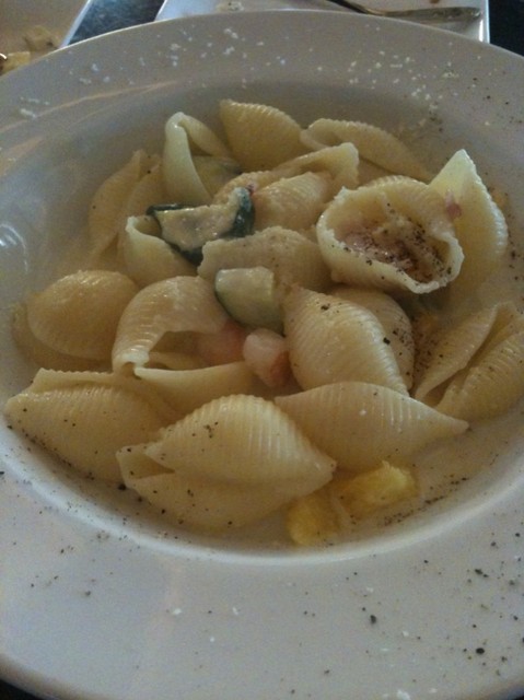 小海老、ベーコン、ズッキーニのオレンジ風味クリームソース コンキリエ