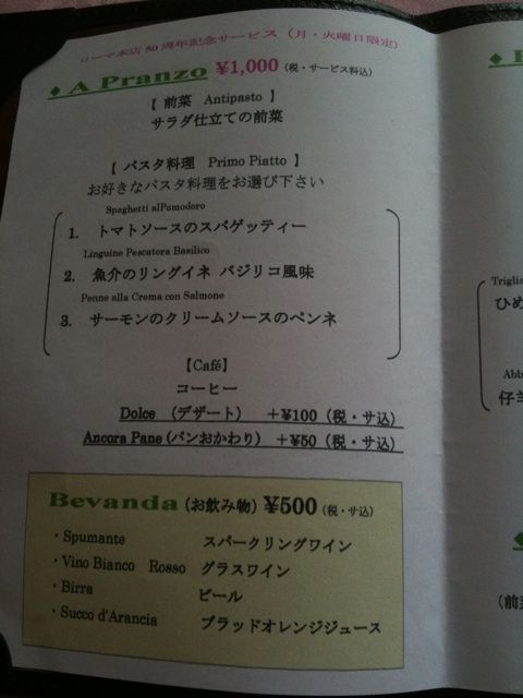サバティーニのローマ本店が五十周年でランチが千円なんや〜いつもは千三百円