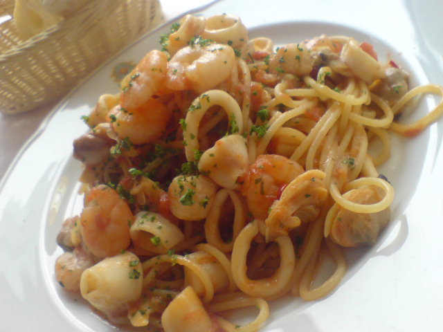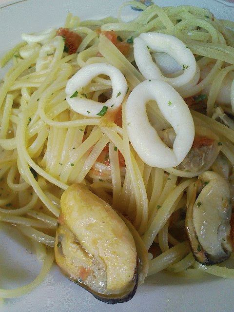して、魚介のリングイネ ジェノバソースをばオーダー