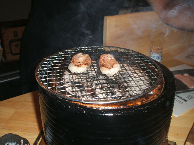 大将が各部位の説明をしながら丁寧に焼いてくれる。網も一回一回変える丁寧さ。けして逆らってはいけません(笑)また、しゃべりに熱中しすぎて食べ時をのがしてもいけません。