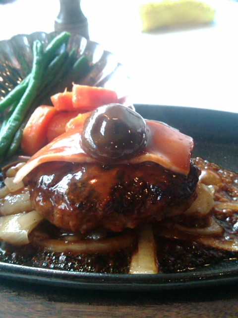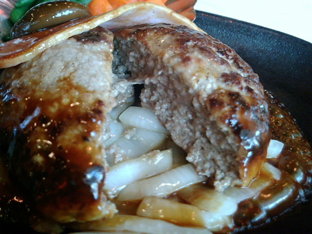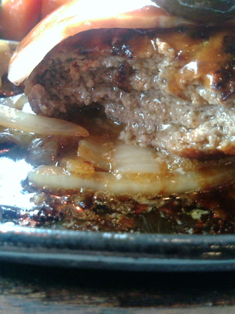 今日のハンバーグはいつもより肉汁がとめどなく溢れてきちょります〜美味しい〜よ〜良い感じに肉汁があふれ出てくるのがわかるかな?すんごい良い感じ〜〜〜