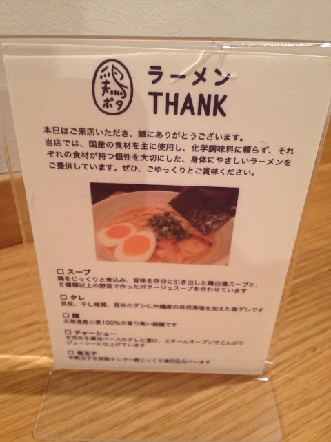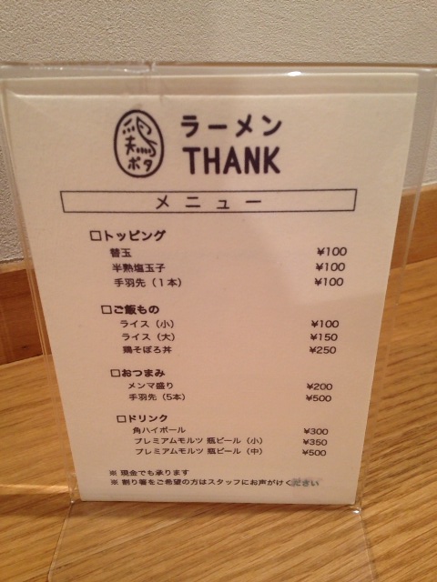 天王洲アイルへセミナーというか勉強会的なのに参加してきた帰り、浜松町で乗り換えの際に「鶏ポタ ラーメン THANK」さんへ。