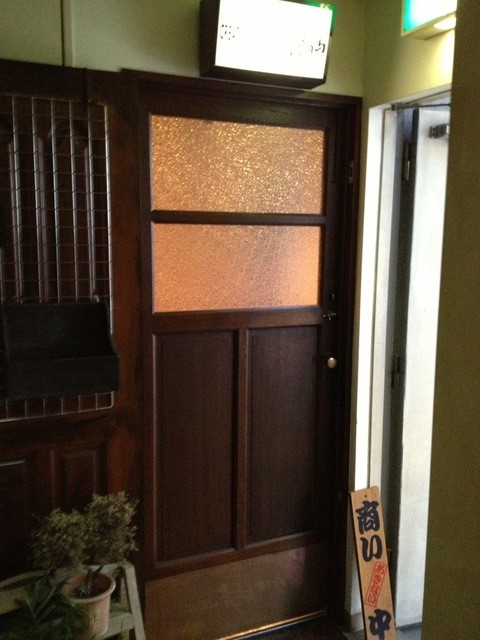 入口はこの張り紙の横の入口から階段を上ったところにあります。