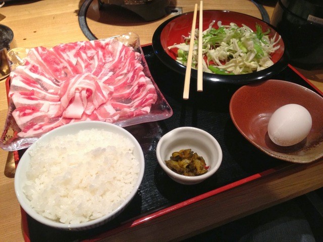 私は、黒豚の重ね丼を注文。独身貴族の先輩は、しゃぶしゃぶ御膳を注文してみました。