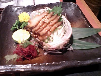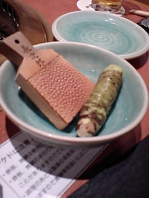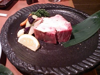 土佐醤油とワサビのタレでいただく極上の牛さんの脂はたまりません。