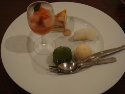 そしてデザート。シャーベットや一口上のケーキ手前は蕨もち。