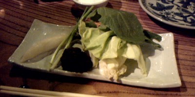 こちら生野菜と特製の味噌を添えて。肉味噌かしら?絶品です。これだけでご飯が食べれます。野菜も甘いいい野菜だわ~。