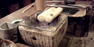 こちらは、ししゃもというかテーブルの雰囲気を。目の前に七輪が一杯あるんですよ。
