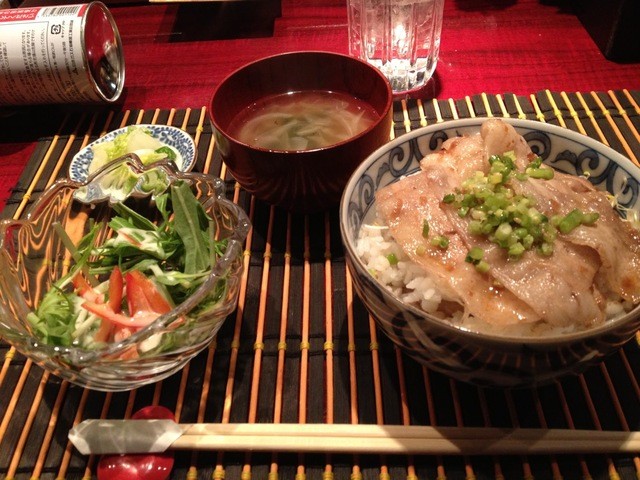 私は、黒豚の重ね丼を注文。独身貴族の先輩は、しゃぶしゃぶ御膳を注文してみました。