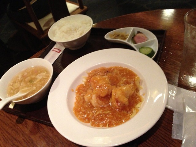 とりあえずは、エビチリのセットとメインのオカズを5種の中から2種選ぶ、選べるランチセットを注文。