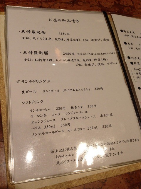 ちょっと値の張るメニューもあるみたいだけど、私、天丼好きなので今日は我慢だね。