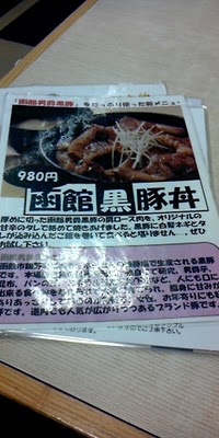 なにやら函館で育ててる新しいブランド豚「函館黒豚」でつくった豚丼。これも美味そうだな~。