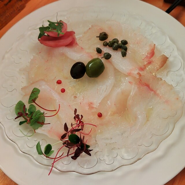 自家製スモーク、サーモンとヒラメのカルパッチョ1,400円