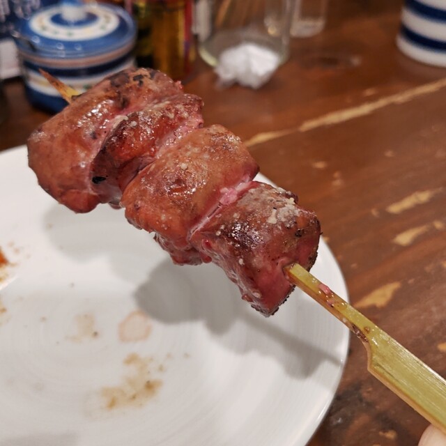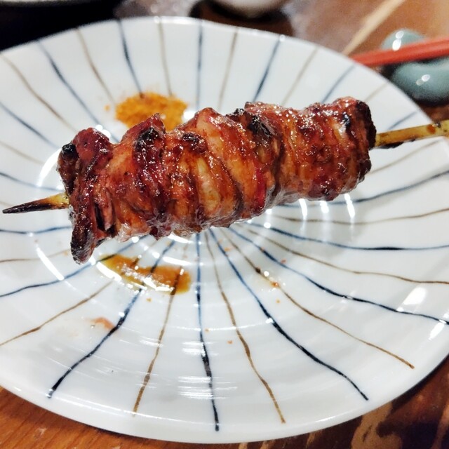 さすがに皮は売り切れてたが、週末限定串として限定で出している「純系名古屋コーチン」にありつけた。