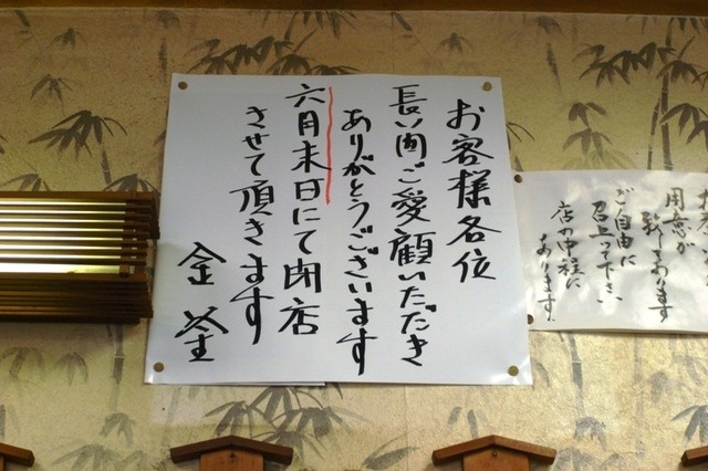 閉店後も支店の金釜 広沢店は営業するけれど、味は本店とは違うので