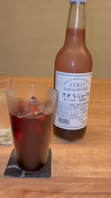 お酒は兵庫のCOCOファームの葡萄ジュースと