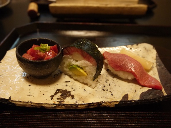 漬け丼・牛のアボカドロール・牛タン寿司。