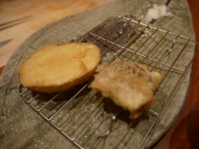 目の前で揚げられた天婦羅がサービスされます。