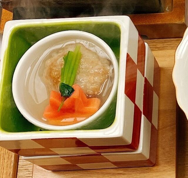 えび芋饅頭は鴨そぼろ餡で食べました。