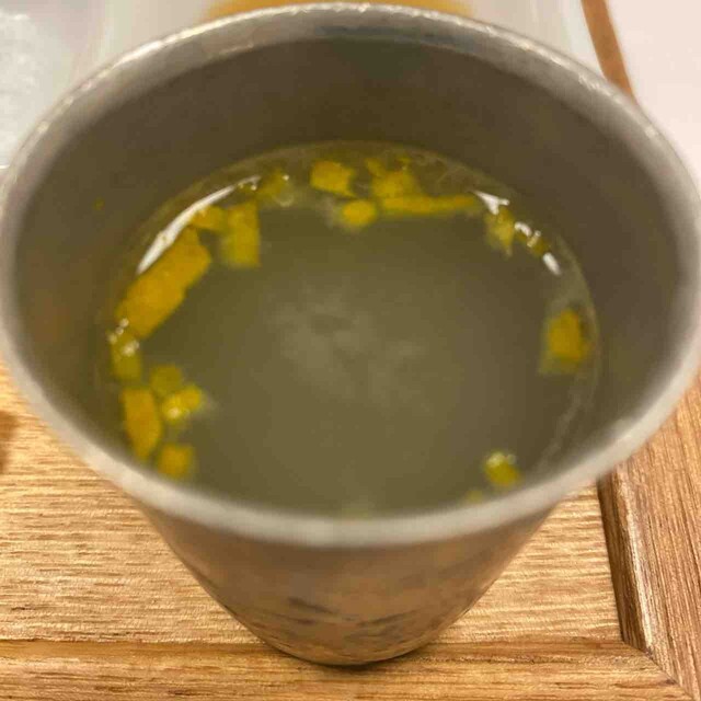 スモークしたサーモンが香ばしく梨のくずと出会ってとても美味しいです。