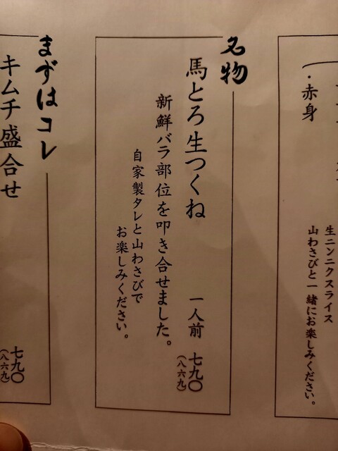 名物・馬ろ生つくね@ばくろう