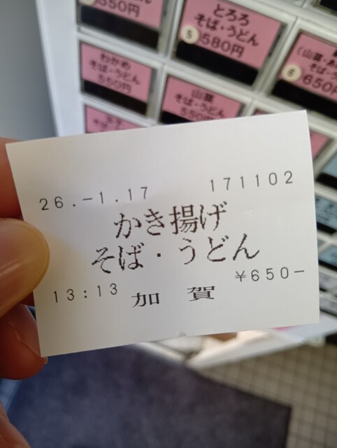 とりあえず、王道のかき揚げそば(650円)を頂きます。この時点でコスパ良し。
