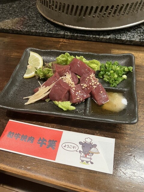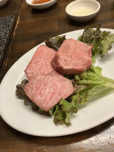生レバーみたいな焼きレバー、生タコ、タン、ハラミ、赤身サイコロ、ヒレ、ランプの他、キムチ盛り合わせ、チヂミを頂きました。