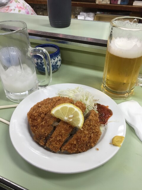 隣のお客さんとも気軽に会話でき、注文されていた「ジャンボメンチカツ」を注文♪