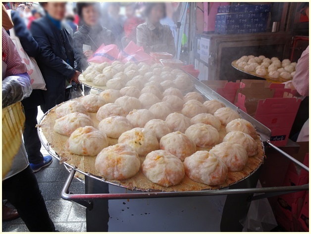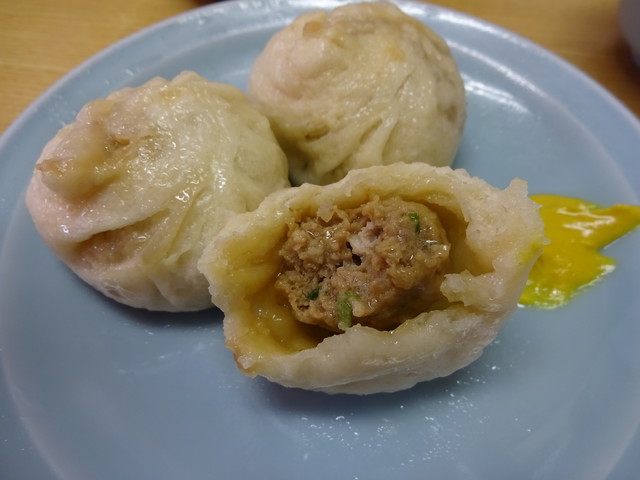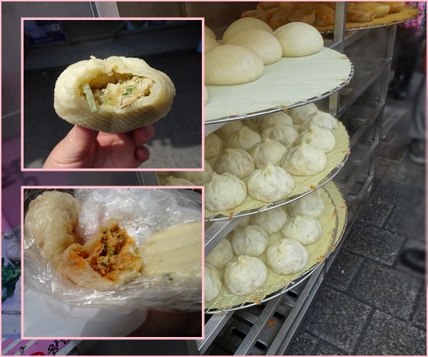 光復市場素食包子店の雪菜まん。