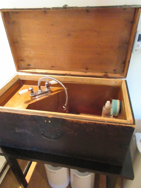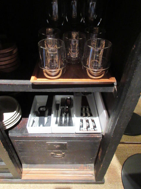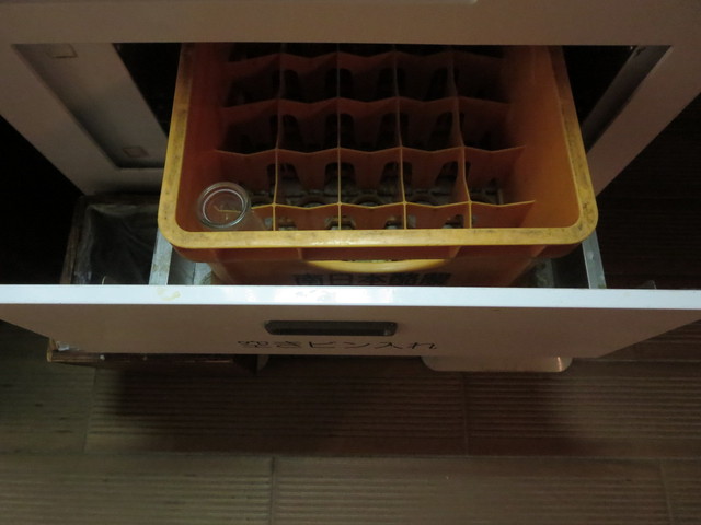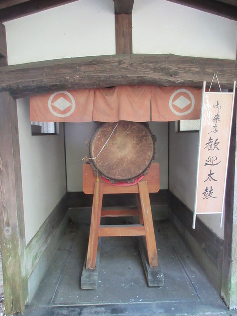 汲むことを配慮されて、柄杓と漏斗が置かれてあります